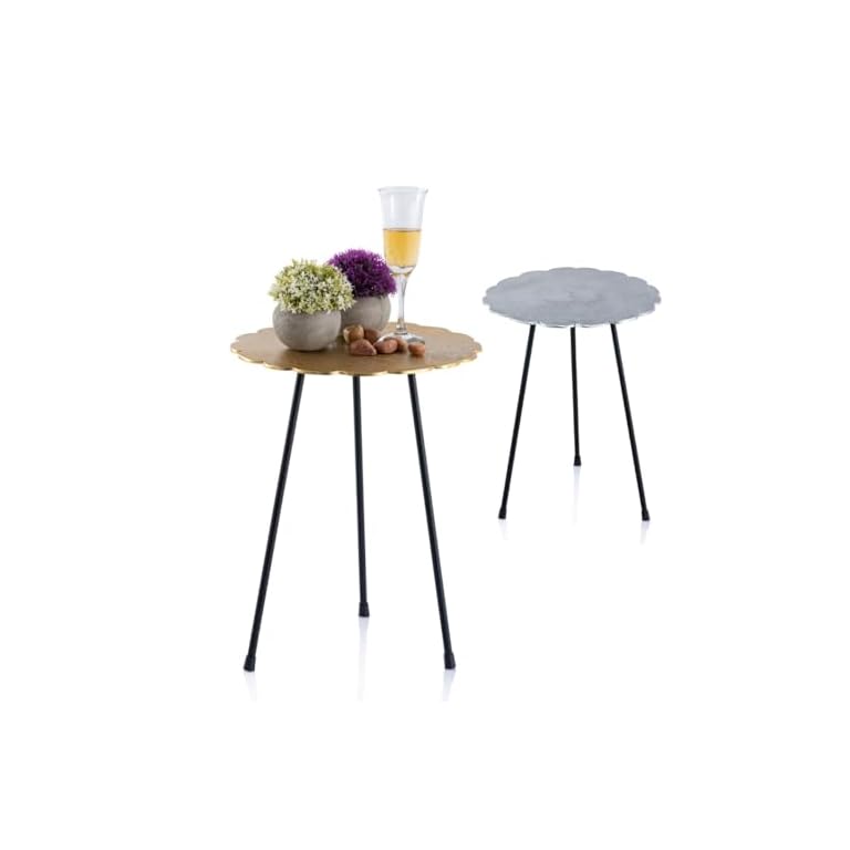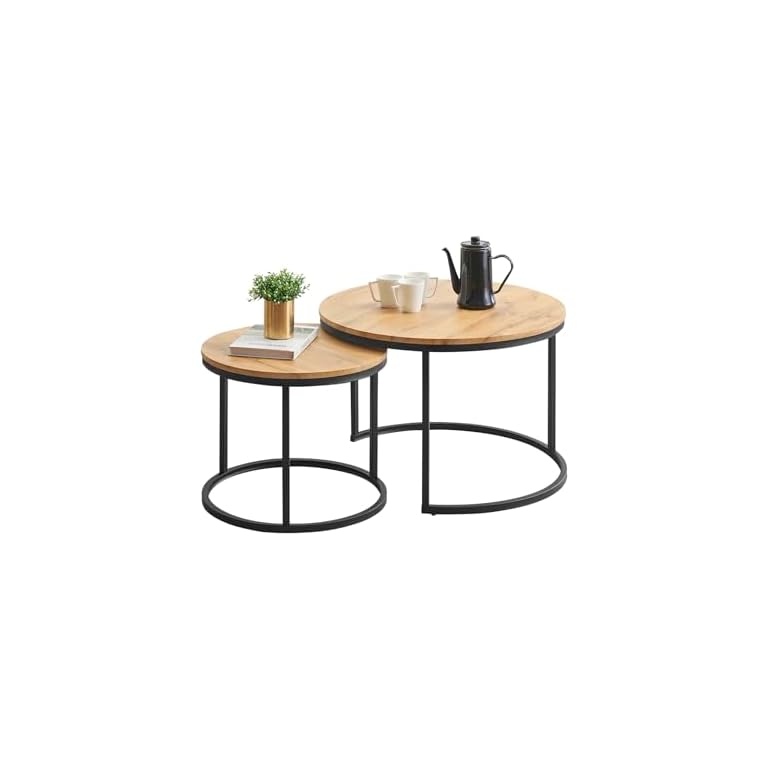 Couchtisch Rund Holz, Modern Sofatisch Schwarz-Gold, Klein Kaffeetisch Metallgestell, Beistelltisch für Wohnzimmer, Durchmesser 80cm, 2102