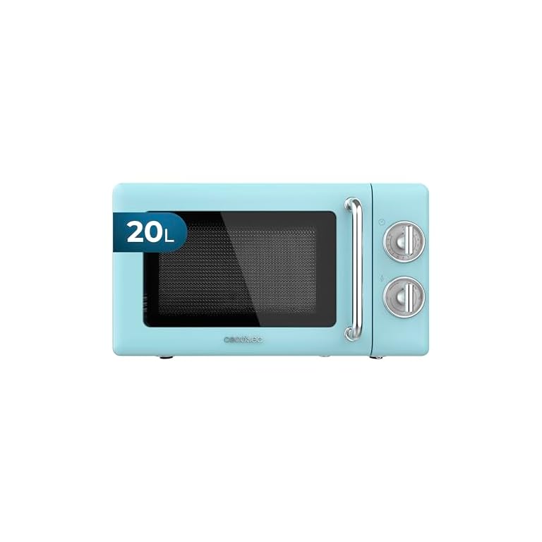 Cecotec Mikrowelle Proclean 3010 Retro Grün Mechanische, 20 l, 700 W, 6 Stufen, Timer bis zu 30 Minuten, Auftaumodus, Vintage-Design in Grün, Stahl-Finish