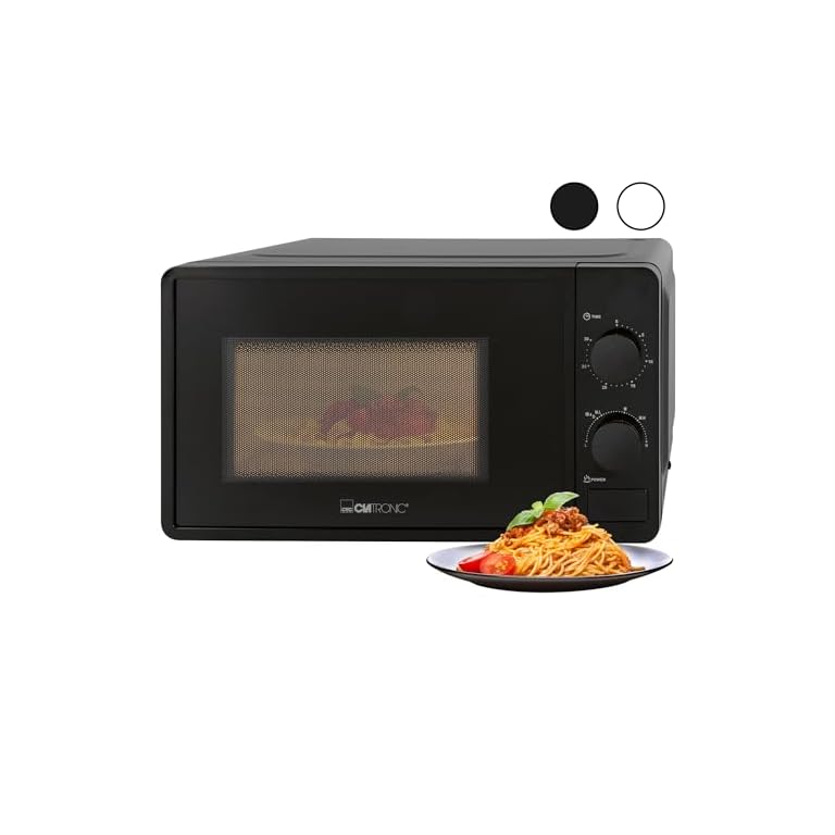Clatronic® Mikrowelle mit 20L Garraum & Garraumbeleuchtung | Microwave mit 6 Leistungsstufen | Microwellengerät mit 30-Min.-Timer | Microwelle mit Ø24,5 cm Drehteller | 700W | MW 791 schwarz