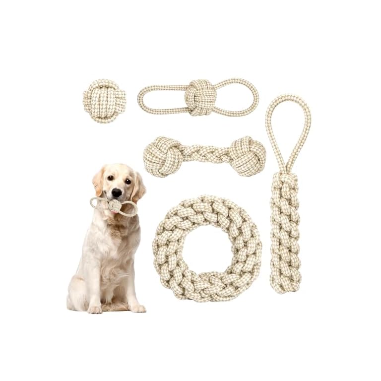 5 Stück Hunde Kauspielzeug Seil, Geflochtene Hundeseile Spielzeug aus Baumwolle & Hanf, Hundespielzeuge Set, Interaktives Kauspielzeug für Welpen, Kleine, Mittelgroße Hunde