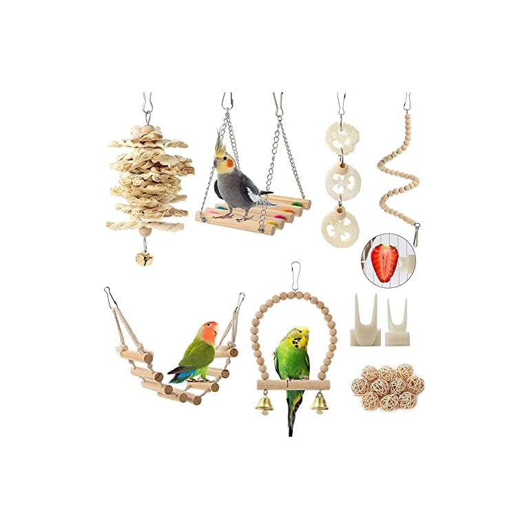 BBjinronjy Vogel-Papageien-Spielzeug, zum Aufhängen, 18 Stück, Vogelkäfig-Zubehör, Spielzeug, Barsch, Leiter, Kauspielzeug, Hängematte für Sittiche, Liebesvögel, Finken und andere kleine Haustiere