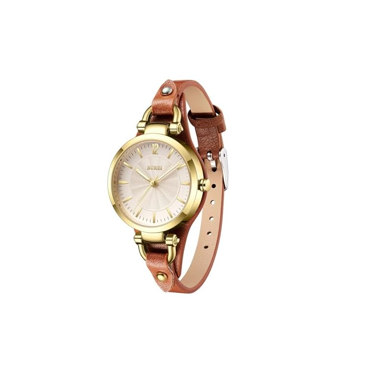 BUREI Mini Uhr Damen Analog Quarz Demenuhr Elegante Armbanduhr Damen mit Lederarmband fur Frauen