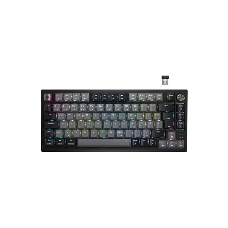 CORSAIR K65 Plus Wireless 75% RGB Hot-Swap-Fähige Mechanische Gaming-Tastatur – Vorgeschmierte MLX Red Linear Switches – Dual-Layer Sound Dampening – PBT Keycaps – QWERTZ DE – Schwarz
