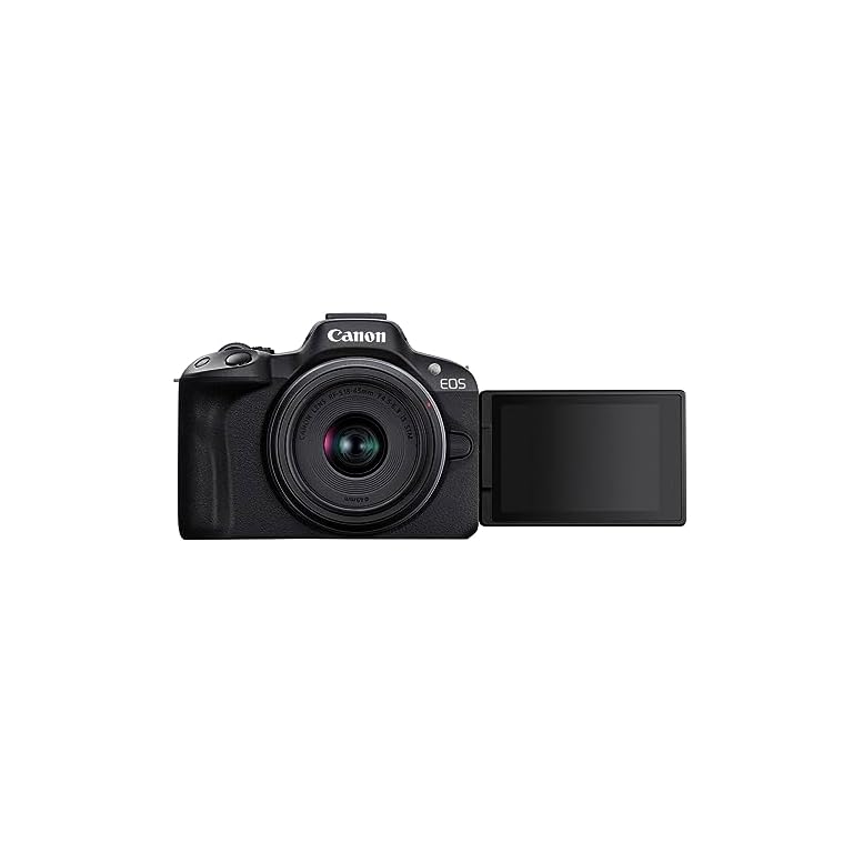 Canon EOS R50 Systemkamera + RF-S 18-45mm is STM Objektiv – Spiegellose Kamera (Digitalkamera mit Autofokus + Motiverkennung für Personen Augen Tiere Fahrzeuge, 4k Video, 15 Bilder pro Sek.) schwarz