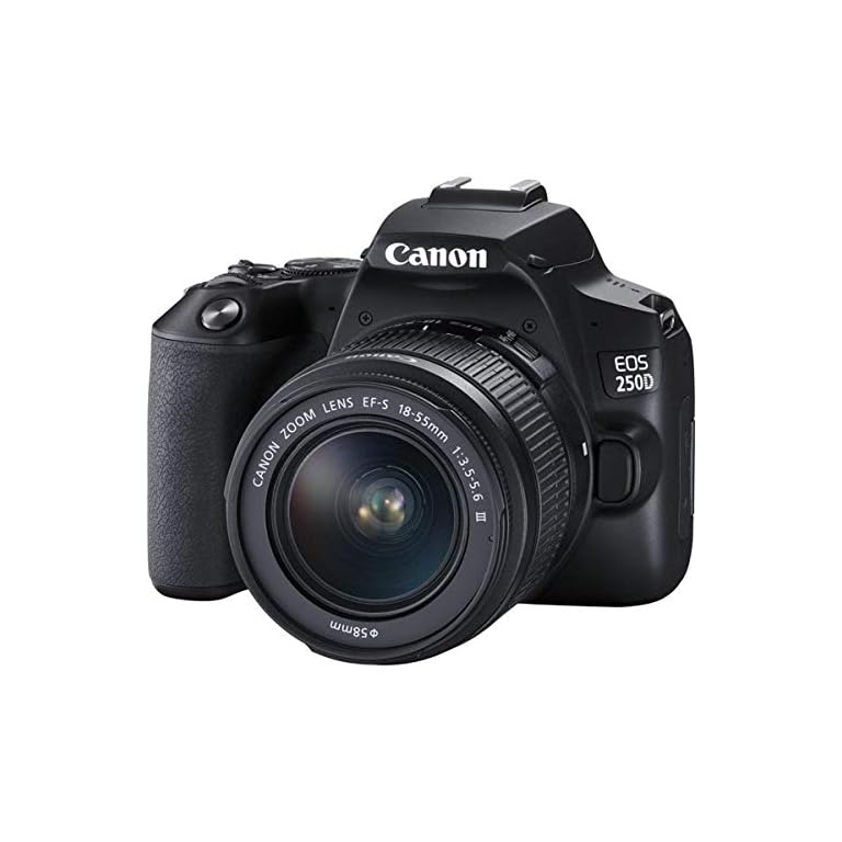 Canon EOS 250D digitale Spiegelreflexkamera + Objektiv EF-S 18-55mm F3.5-5.6 III (24, 1 Megapixel, 7,7 cm/3 Zoll Vari-Angle Display, APS-C-Sensor, 4K, Full-HD, DIGIC 8, WLAN, Bluetooth), schwarz