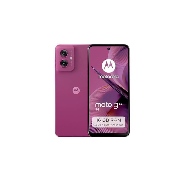 Motorola Moto g55 5G Smartphone (6,49″-FHD+-Display, 50-MP-Kamera, 8/256 GB, 5000 mAh, Android 14) Twilight Purple (Veganes Kunstleder), inkl. Schutzcover [Exklusiv bei Amazon]